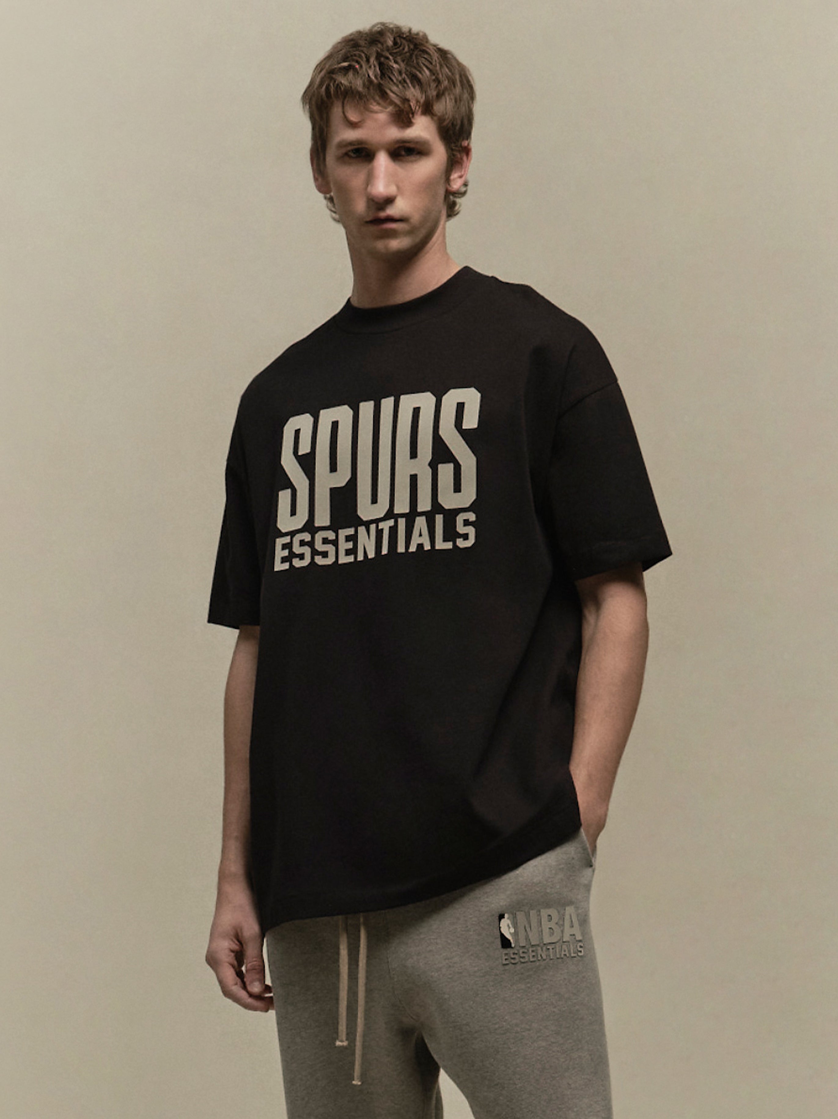 The Spurs short sleeve tee is crafted from core cotton jersey. It features a relaxed fit in the body with dropped shoulders and a rib-knit crewneck. On the front, there is a rubberized soft-touch Spurs lockup along with the iconic NBA logo on the back. Additionally, a rubberized label is located at the back collar.
