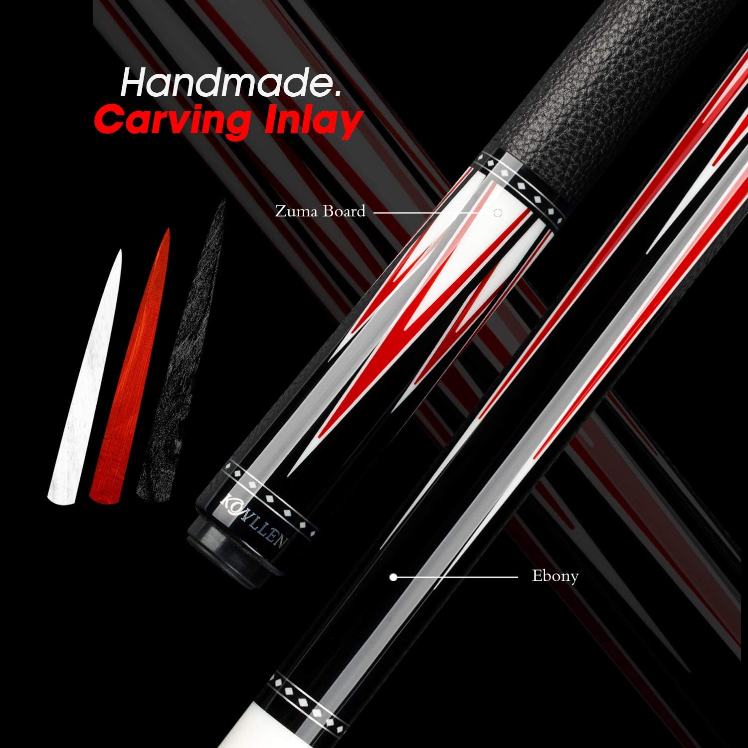 Handmade carbon fiber table cue true wood inlaid table cue