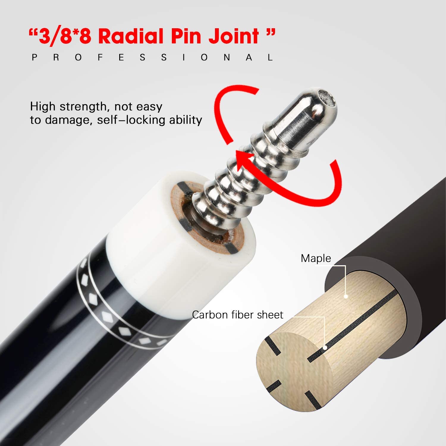 - The 13 mm carbon fiber shaft is durable and low deflection, suit for most professional players;