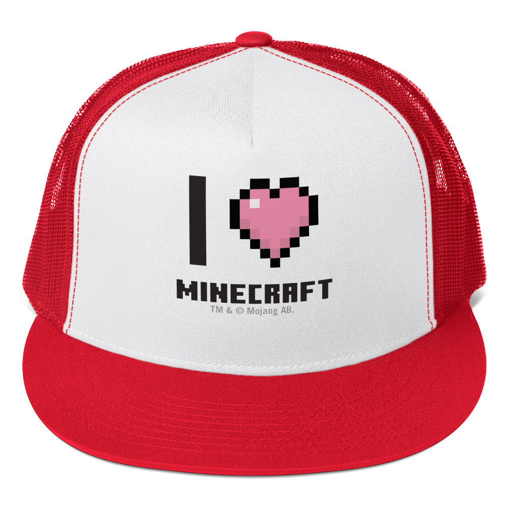 Show off your love for all things Minecraft with the I Heart Minecraft Trucker Hat! Designed for gamers and fans alike, this stylish hat?makes a statement wherever you go.