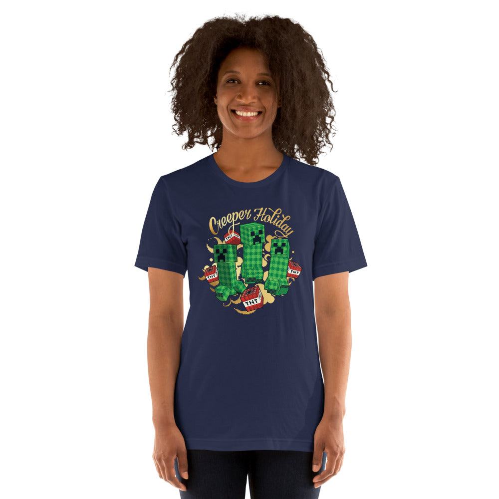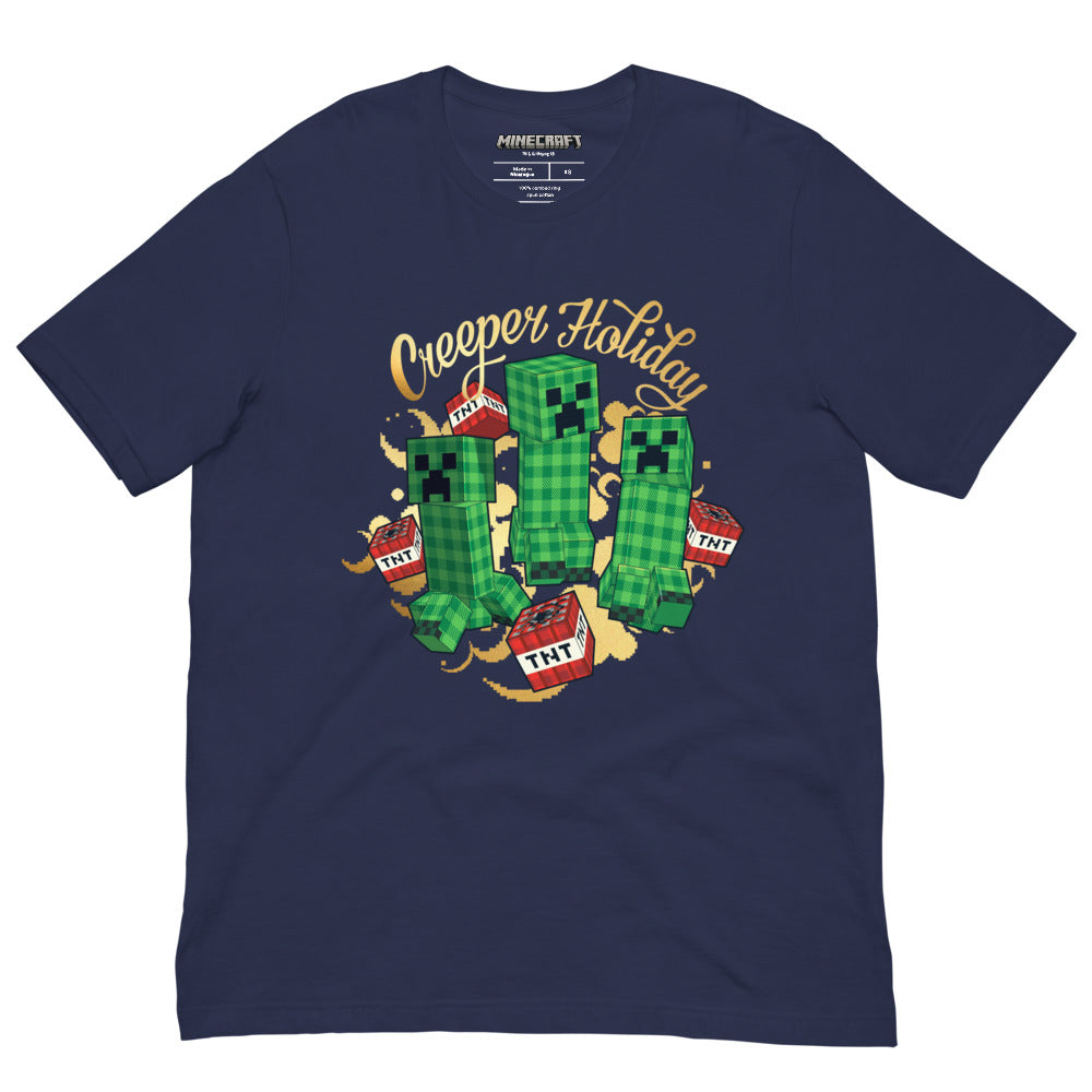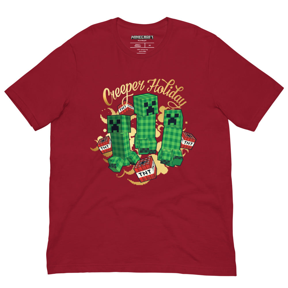 Celebrate the season with some blocky cheer!?The Minecraft Creeper Holiday T-Shirt is the ultimate festive wear for gamers who love building, battling, and spreading pixel-perfect joy. Featuring the iconic Creeper dressed for the holidays, this tee brings holiday spirit.