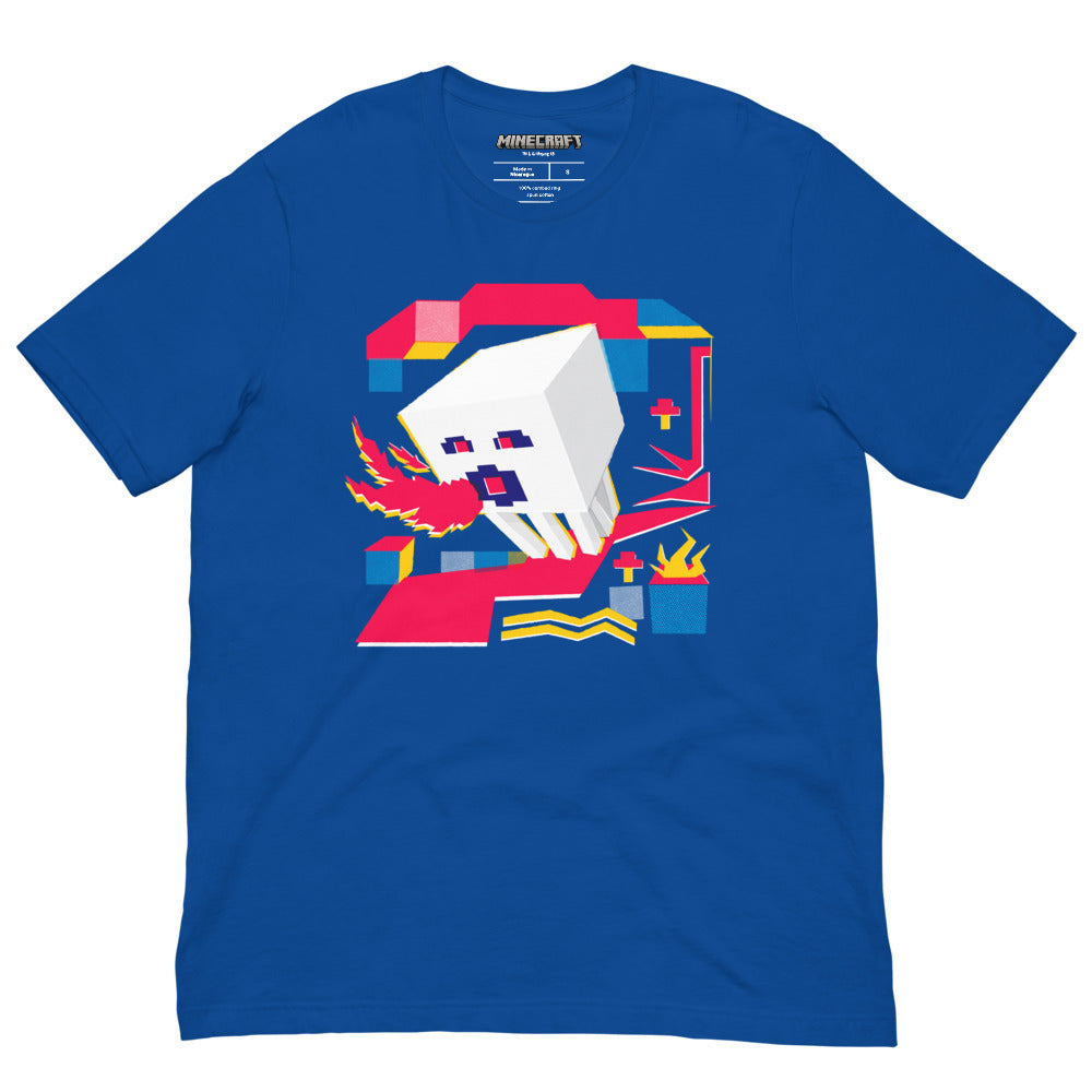 Bring the Nether to your wardrobe with the Minecraft Ghast Adult T-Shirt. Featuring the iconic, ghostly Ghast in all its blocky glory, this tee is perfect for Minecraft fans who love a bit of fiery flair. Whether you're battling mobs or building your dream world, this shirt lets everyone know you're not afraid of a little lava.